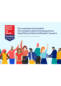 As the global authority on workplace culture, Great Place To Work brings 30 years of groundbreaking research and data to help every place become a great place to work for all. Their proprietary platform and For All™ Model helps companies evaluate the experience of every employee, with exemplary workplaces becoming Great Place To Work Certified™ or receiving recognition on a coveted Best Workplaces™ List.